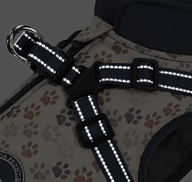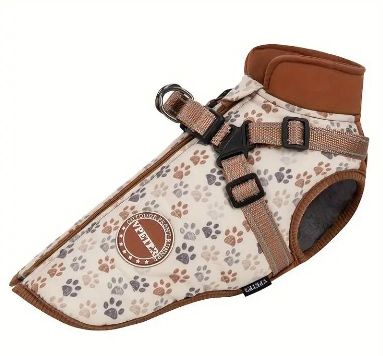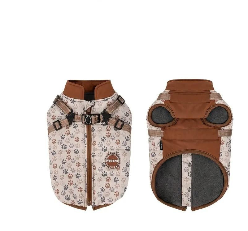 Hundemantel Blau/Braun – Warm & Wasserfest mit Geschirr für Kl.-mittlere Hunde