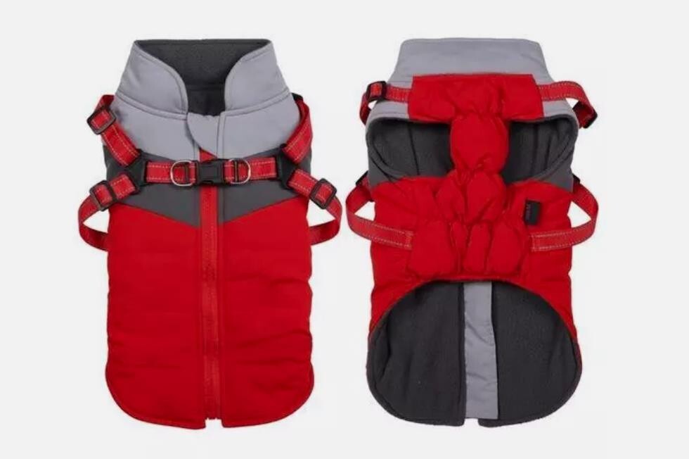 Hundemantel mit Geschirr Winddicht für kleine Hunde Rot /Schwarz