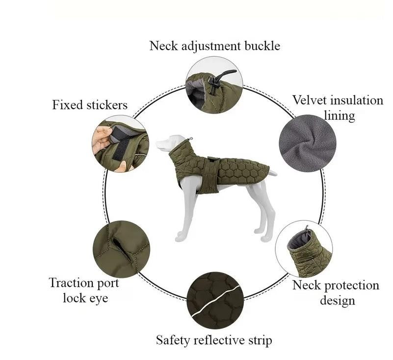 Unser stylischer Hundemantel schützt Ihren Vierbeiner zuverlässig vor Kälte, Wind und Nässe – perfekt für Herbst und Winter. Die reflektierenden Details sorgen für bessere Sichtbarkeit bei Dunkelheit, während der individuell anpassbare Hals mit Zugband und Gummibänder an den Beinen einen sicheren und bequemen Sitz garantieren.