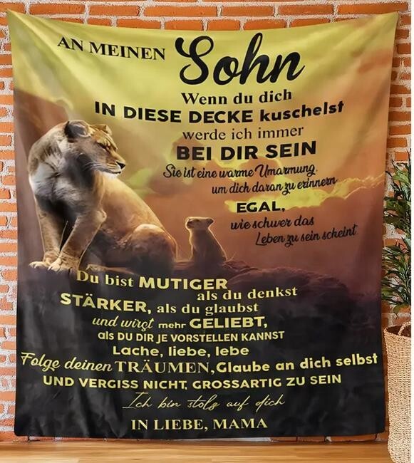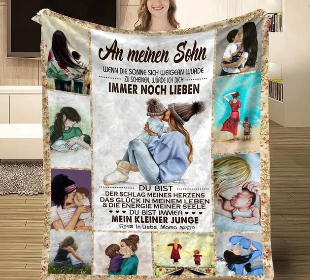 Die persönliche Kuscheldecke „An meinen Sohn von Mama“ ist weit mehr als ein einfaches Wohnaccessoire – sie ist ein Symbol von Liebe, Nähe und Geborgenheit.